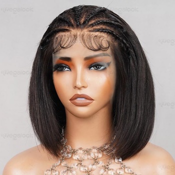 Pelucas Bob 13x4, nudos blanqueados, encaje transparente, Halo trenzado, peluca de cabello humano brasileño largo y recto